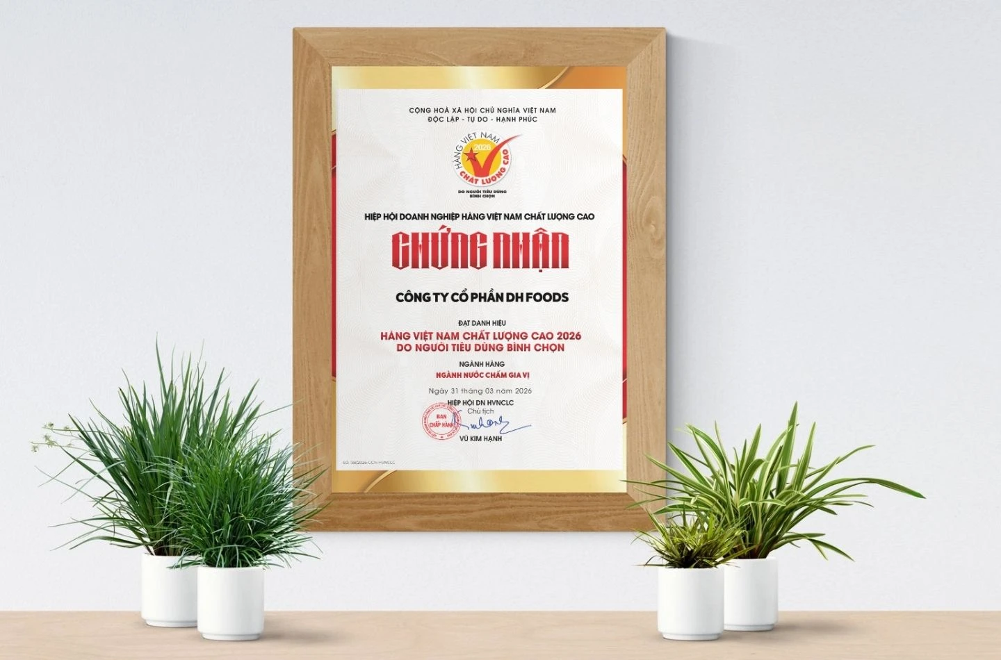 Lần thứ ba, Dh Foods đạt chứng nhận HVNCLC 2025 do người tiêu dùng bình chọn. Đây là niềm động lực lớn lao đối với Ban lãnh đạo và tập thể Dh Foods, để chúng tôi không ngừng nâng cao chất lượng sản phẩm, từng bước tiến tới hội nhập và chuyển đổi Xanh – Sạch – Số.