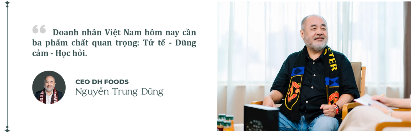 Là người lãnh đạo, tôi luôn cố gắng giữ mình gần gũi, lắng nghe và truyền năng lượng tích cực. Nhiều bạn nhân viên nói vui rằng “anh Dũng là người truyền cảm hứng bằng cách làm, chứ không bằng bài giảng”. Tôi muốn họ cảm nhận rằng, Dh Foods là nơi mà mỗi người đều có cơ hội tạo nên giá trị, dù ở vị trí nhỏ nhất.