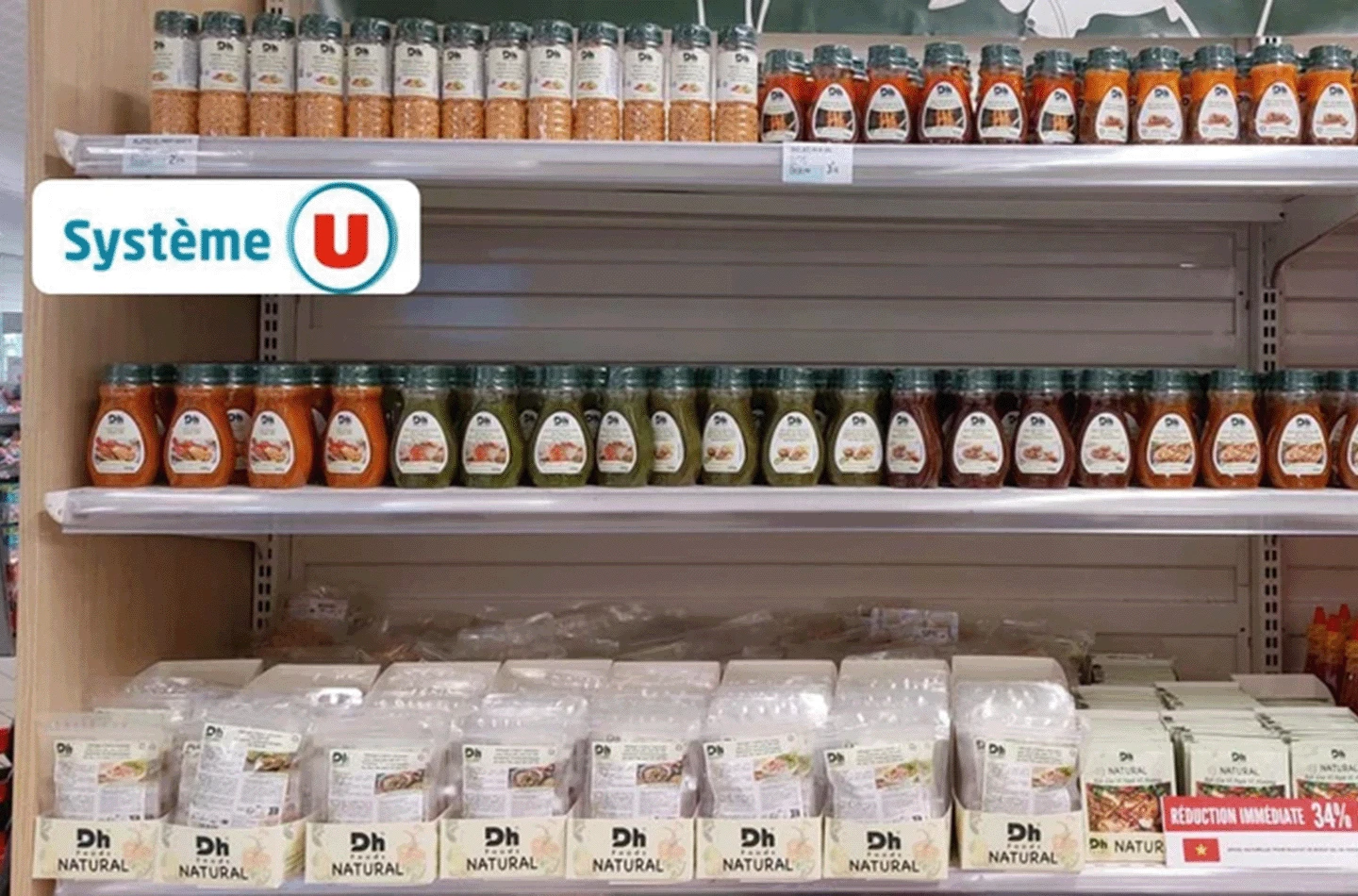 Gia vị Dh Foods tại chuỗi siêu thị Système ở Pháp - Ảnh: DNCC