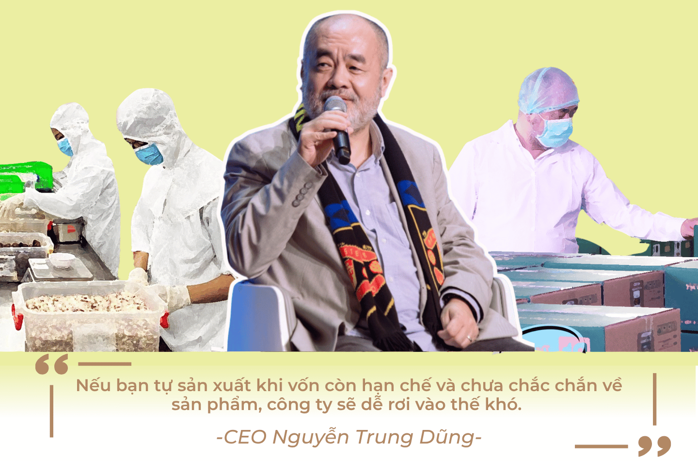 Nếu bạn tự sản xuất khi vốn còn hạn chế và chưa chắc chắn về sản phẩm, công ty sẽ dễ rơi vào thế khó. Trong ngành thực phẩm, nhiều khi bạn dự định bán sản phẩm A, nhưng ra thị trường, A không được đón nhận như kỳ vọng. Thị trường thay đổi, bạn nảy ra ý tưởng sản phẩm B tiềm năng hơn, nhưng khi đã đầu tư máy móc để sản xuất A, việc xoay chuyển sẽ rất khó khăn, tốn kém.