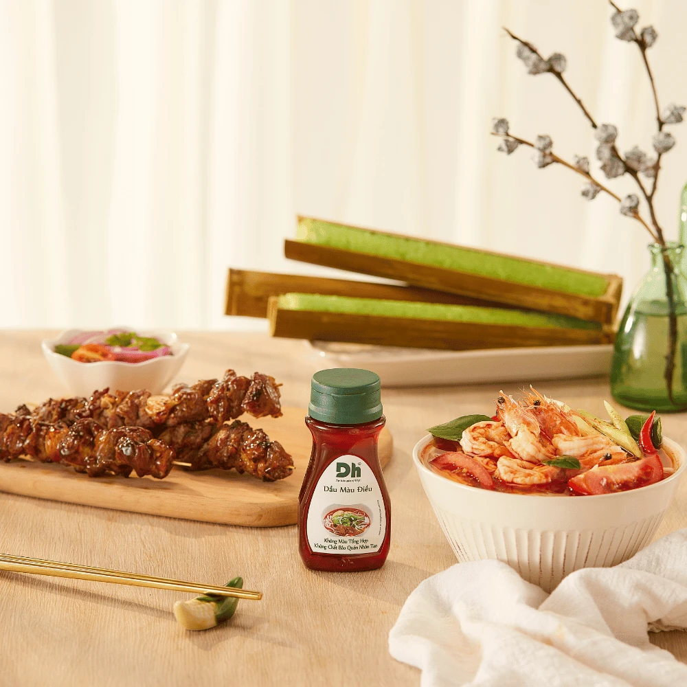 Từ những hạt màu điều chất lượng nhất, Dầu Màu Điều là gia vị tạo màu tự nhiên uy tín cho món Thịt Kho, Bò Kho, Bún Riêu hay Khô Gà, mà không làm ảnh hưởng đến hương vị món ăn.