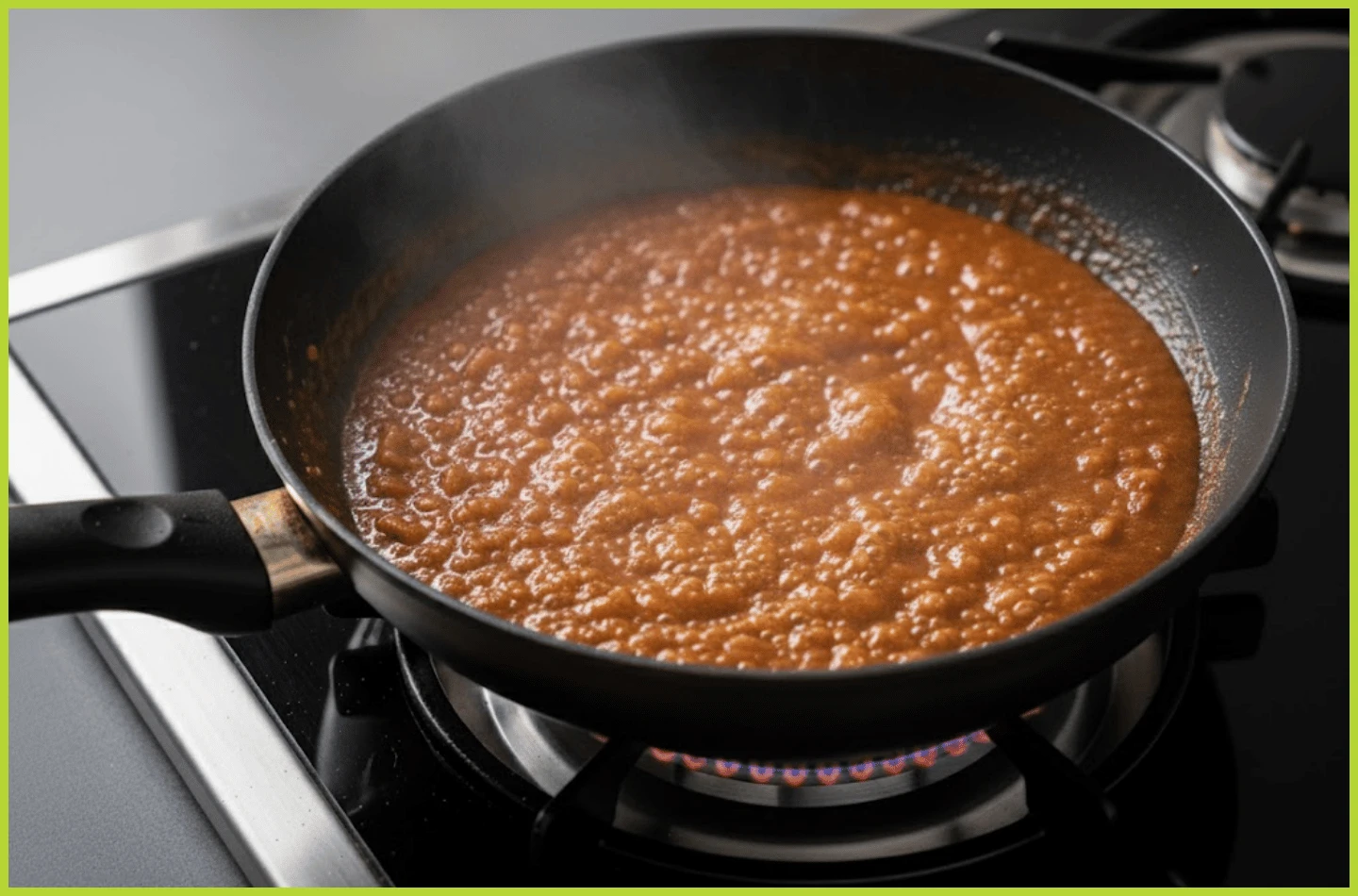 Tiếp tục xào phần xốt trong vòng 30s rồi cho nửa cốc nước lọc vào rồi đun đến khi hỗn hợp sánh lại thì tắt bếp.