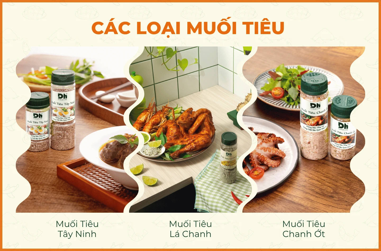 Để thoả lòng cho các tín đồ ăn cay, Muối Tiêu Lá Chanh được "nâng cấp độ cay" lên loại Muối Tiêu Chanh Ớt có thêm thành phần là ớt đỏ. Và cuối cùng là loại Muối Tiêu Tây Ninh với hạt muối to, giòn và thơm mùi tiêu được khách hàng ưa dùng.