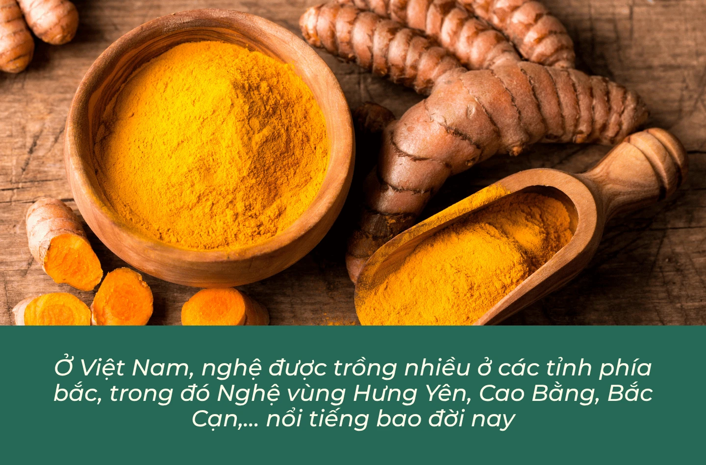 Trong ẩm thực Việt, nghệ là thành phần chính tạo nên gia vị cà ri và ngũ vị hương. Có lẽ, bạn đã từng nhiều lần ăn tô “mì xứ Quảng” với vắt mì vàng óng; đâu đó đĩa bánh xèo chảo vàng, thơm và đầy thịt; tô mì xứ Quảng với vắt mì vàng óng hay món cá rô phi kho nghệ của mẹ nấu,...