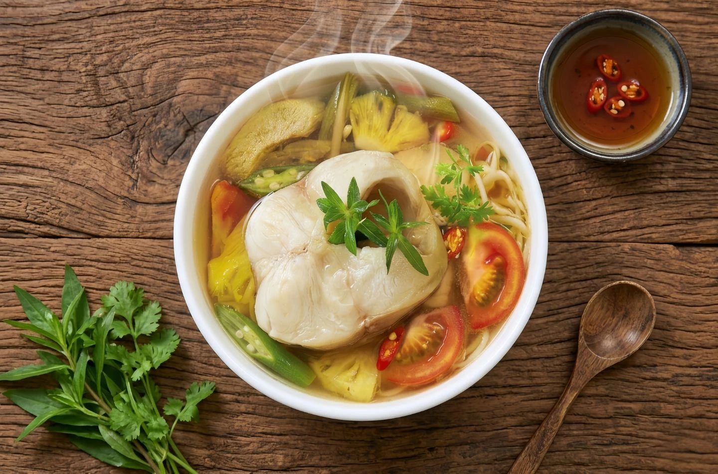 - Siêu ngon chuẩn vị: Xốt cân bằng hoàn hảo ngũ vị (chua thanh, ngọt dịu, cay nhẹ). Nước dùng bắt mắt, dậy mùi mắm, tỏi, mang đến hương vị mộc mạc, “bắt cơm” chuẩn vị mẹ nấu.