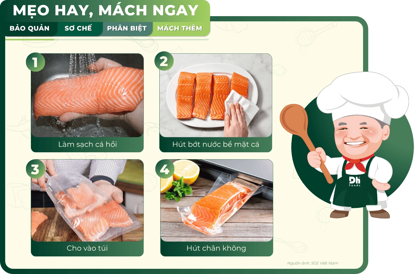Bằng cách áp dụng các bước này, bạn có thể yên tâm bảo quản cá hồi đông lạnh mà không lo mất đi chất lượng và hương vị của cá hồi. Đây là giải pháp tiện lợi cho những ai muốn chuẩn bị sẵn nguyên liệu cho các bữa ăn gia đình.