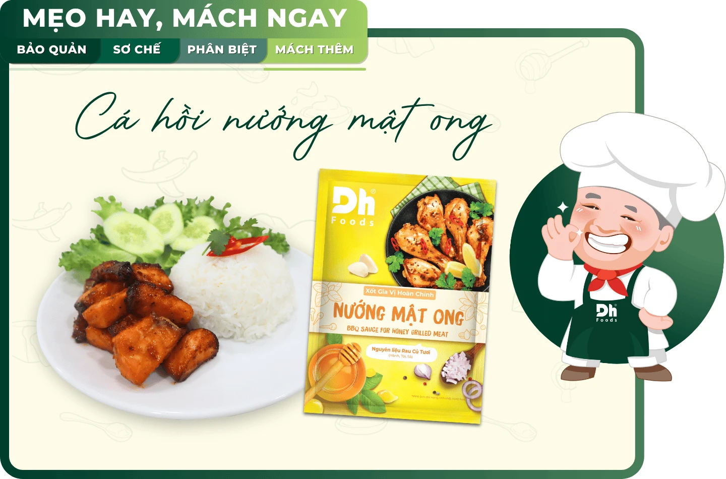 Bật mí thêm bí quyết nhanh gọn nằm ở gói Xốt Gia Vị Hoàn Chỉnh Nướng Mật Ong Dh Foods. Sản phẩm được làm từ mật ong hoa nguyên chất 100%, kết hợp với vị cay cay của Tiêu Đen và hương thơm từ Ngũ vị Hương làm món ăn càng trở nên hấp dẫn khó cưỡng. Chỉ cần ướp 30-60 phút, rồi nướng vàng nhẹ với nồi chiên không dầu, bạn đã có ngay món Cá hồi nướng chuẩn vị.