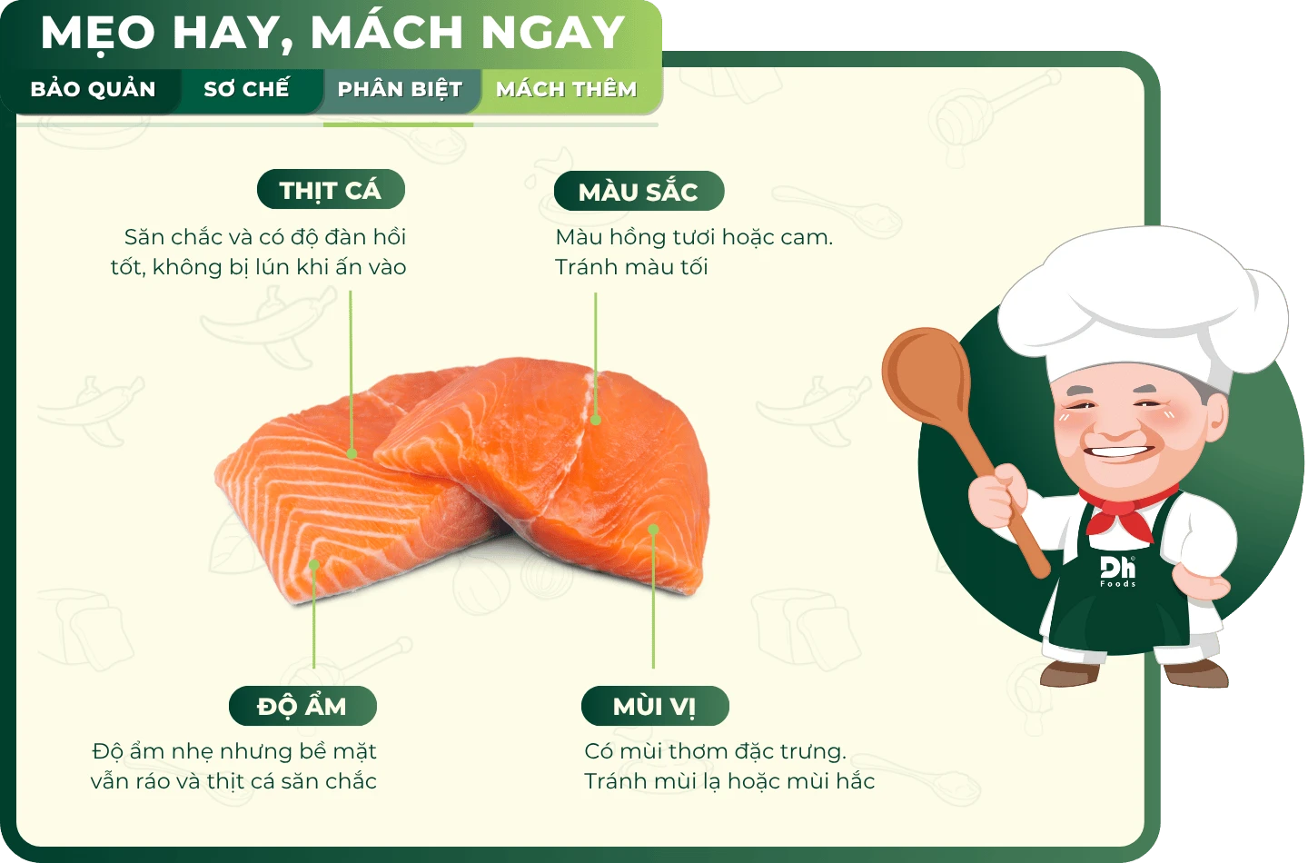 Hy vọng những mẹo trên sẽ giúp bạn dễ dàng chọn mua Cá hồi tươi ngon, sơ chế và bảo quản cá đúng cách. Dh Foods mong rằng bạn sẽ luôn có những trải nghiệm nấu ăn thú vị và thật nhiều bữa ăn ngon bên gia đình bạn nhé!