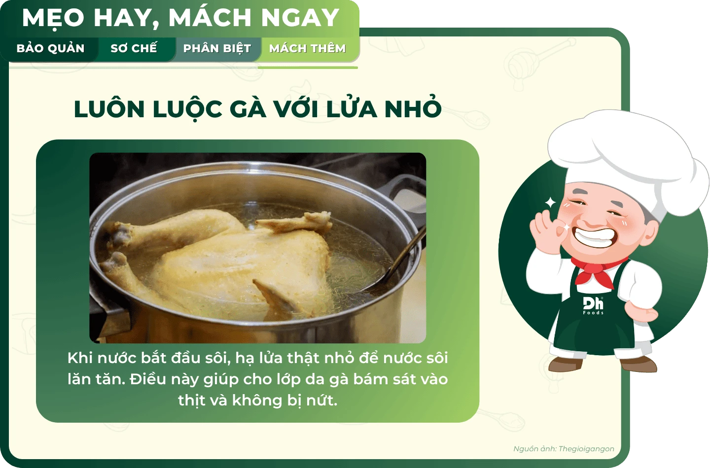 Để tránh tình trạng "da đi đường da, thịt đi đường thịt", bạn cần lưu ý những mẹo sau khi luộc gà đề thành phẩm bóng bẩy, đẹp mắt.