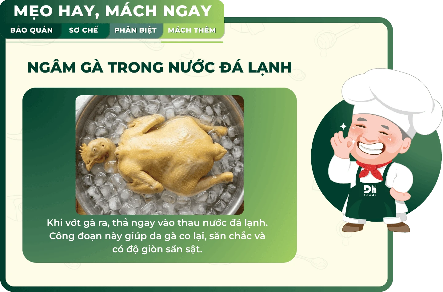 Ngâm gà trong nước đá lạnh