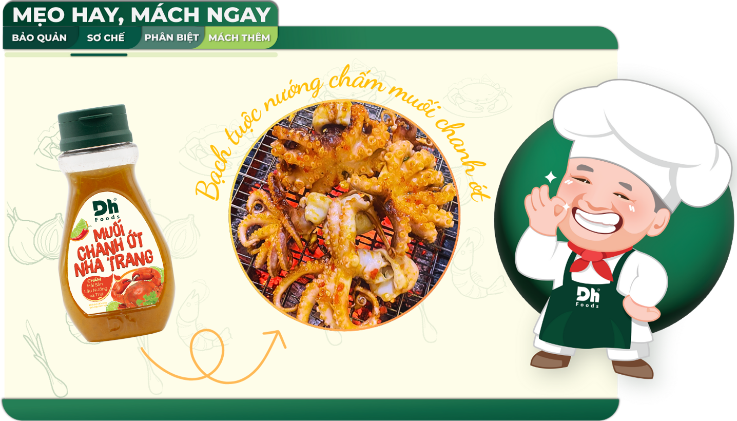 Thử ngay bạch tuộc nướng chấm Muối Chanh Ớt Nha Trang của nhà Dh Foods chỉ với 3 phút chuẩn bị