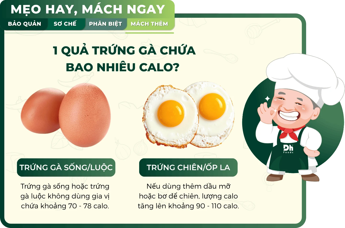 Tùy vào kích thước và cách chế biến, hàm lượng calo trong trứng sẽ có sự khác biệt.