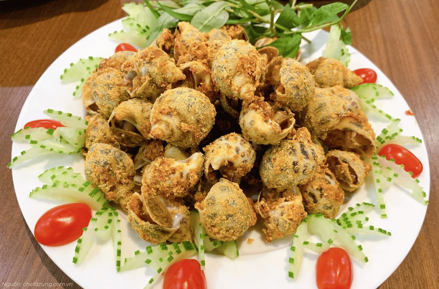 Mở màn danh sách món ngon từ ốc hương chính là ốc hương xốt trứng muối với sự kết hợp béo bùi và mặn mà khó cưỡng. Lớp xốt sánh mịn ôm trọn phần ốc hương tạo nên hương vị vừa bắt mắt vừa đậm đà, ăn một lần là nhớ mãi.