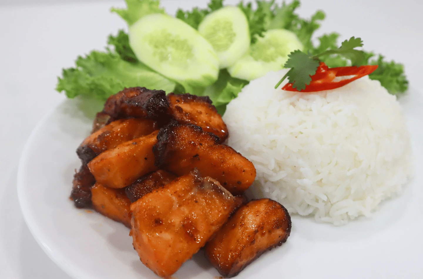Cá hồi nướng mật ong là món ăn tuyệt vời để thưởng thức cùng cơm trắng. Với khoảng 260g cá, bạn có thể dùng kèm 1-2 phần cơm, vừa đủ cho bữa ăn no và ngon miệng.