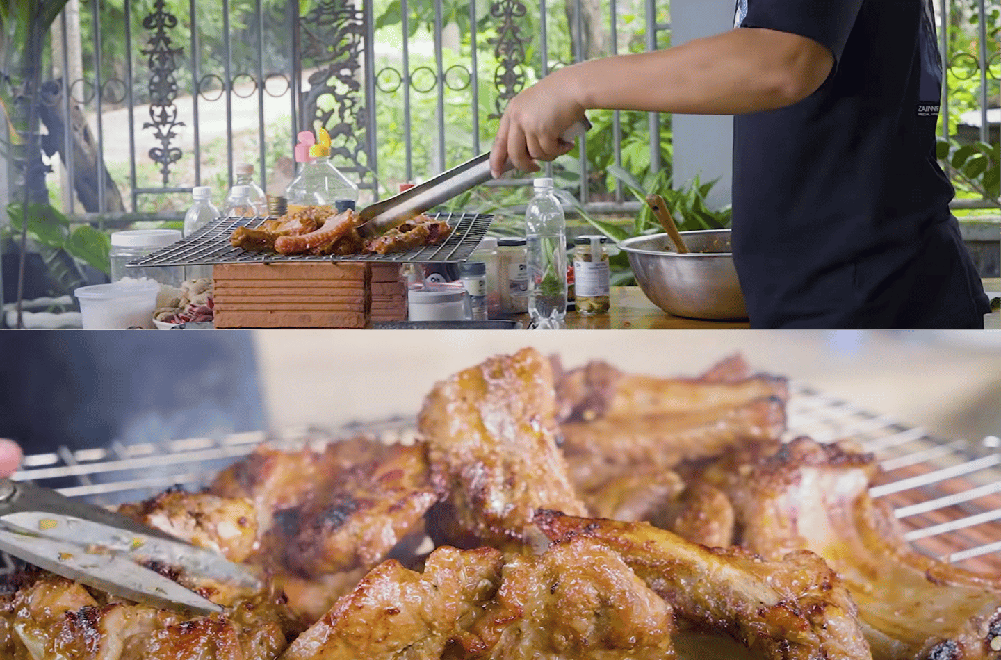 Nướng sườn trên bếp than sẽ đem lại lớp sườn vàng óng, thơm lừng mùi khói, giúp bạn có được hương vị cơm tấm Sài Gòn đúng điệu. Trước hết, bạn nhóm than cho đến khi hồng sau đó xếp sườn lên vỉ và nướng. Khi nướng bạn cần trở đều hai mặt cho đến khi thịt chín mềm, có màu nâu vàng đẹp mắt.
