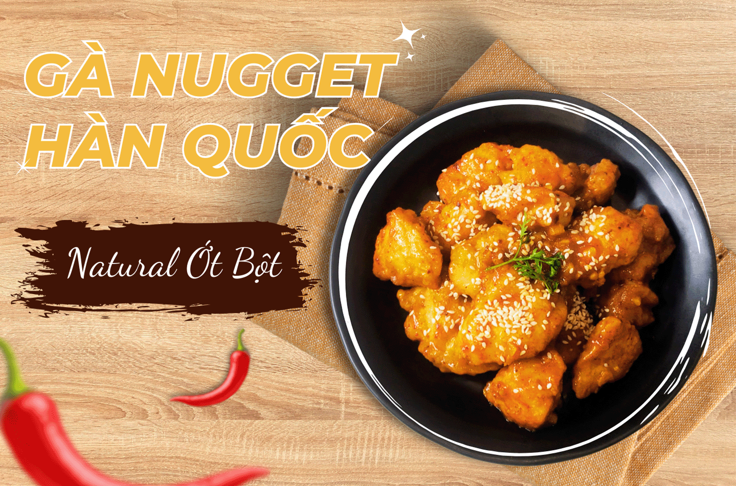 Đặc biệt, Natural Ớt Bột từ Dh Foods khiến vị giác của bạn bùng nổ từ miếng đầu tiên đến miếng cuối cùng. Không chỉ với món Gà nugget kiểu Hàn Quốc mà bất cứ món ăn nào cũng sẽ trở nên thơm ngon, bừng vị.