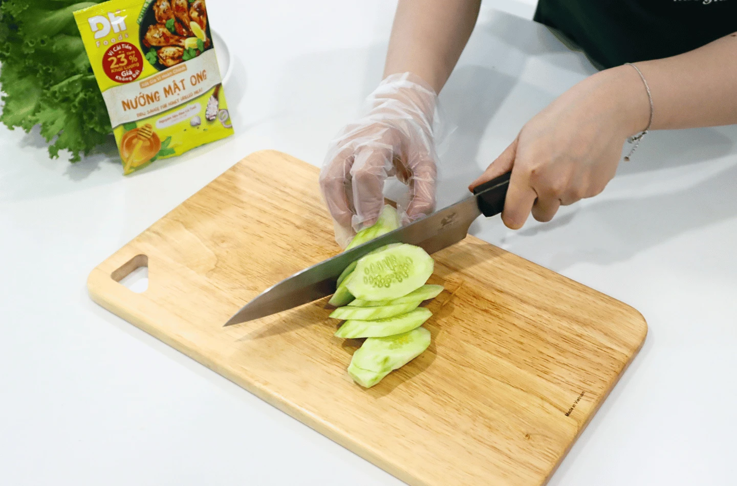 Trong lúc chờ tôm chín, bạn có thể chuẩn bị đồ ăn kèm để bữa ăn thêm trọn vị. Rửa sạch xà lách, dưa leo rồi cắt lát vừa ăn. Với khẩu phần này, bạn có thể dùng kèm cơm trắng là vừa đủ cho bữa ăn 1-2 người.