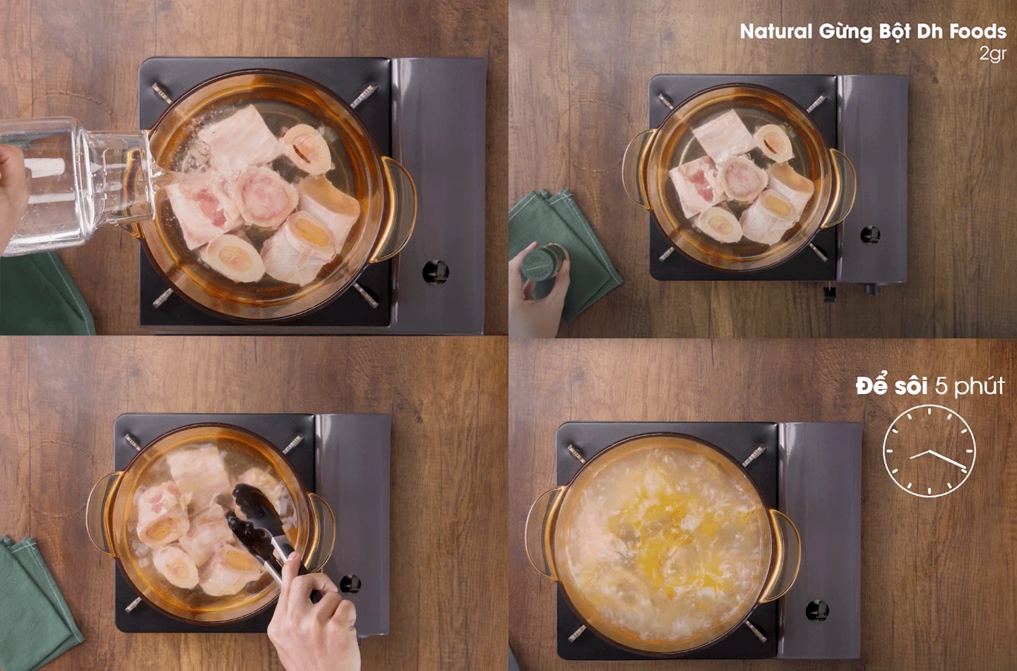 Mẹo nhỏ: Đừng quên cho vào nồi nước 2g Natural Gừng Bột để khử được mùi của xương nhé!