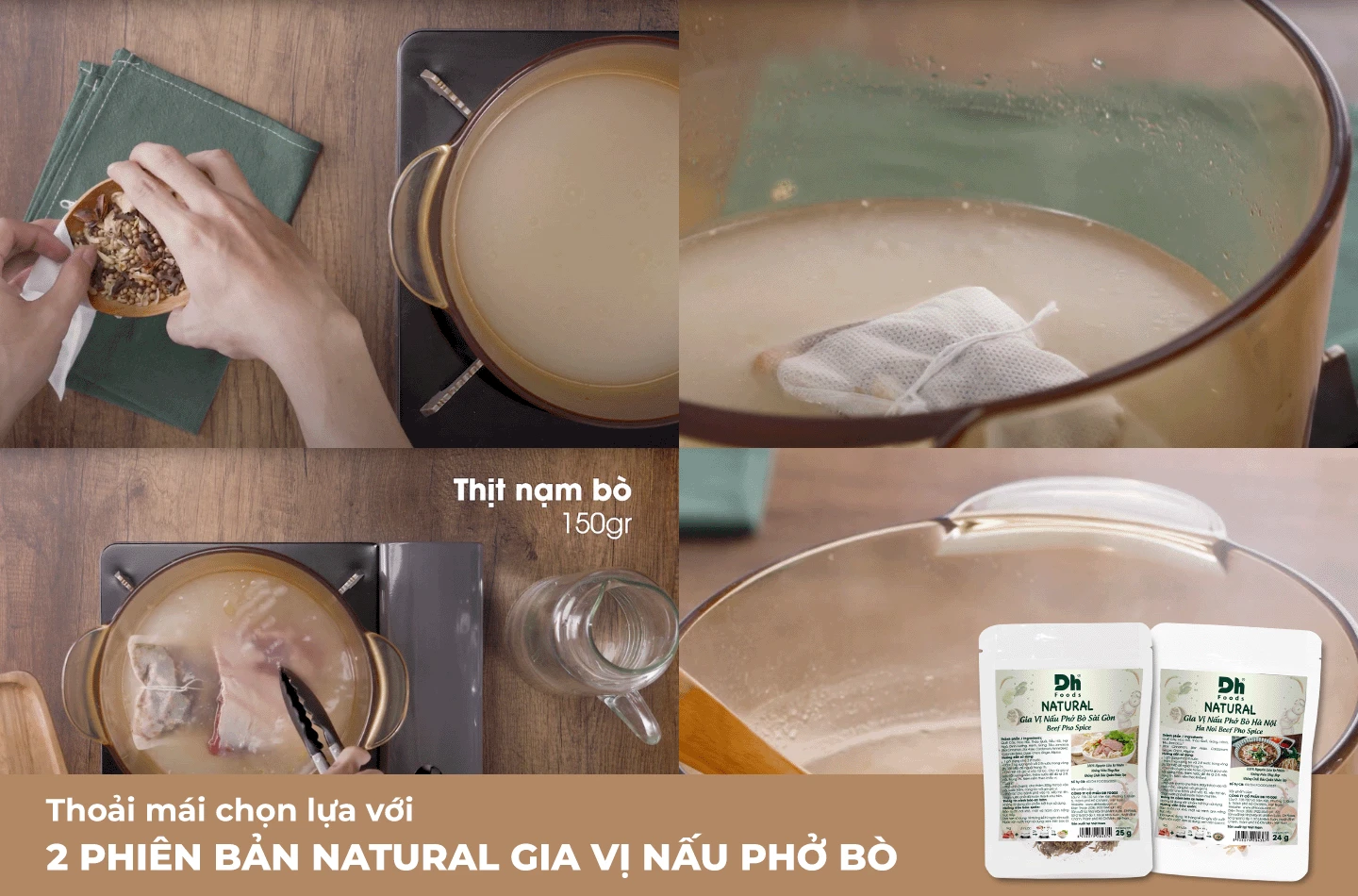Với cách nấu Phở bò vừa chia sẻ, Dh Foods hy vọng bạn sẽ có được những tô Phở chuẩn vị xưa ngay tại nhà một cách dễ dàng và tiện lợi hơn cùng với sự đồng hành của gói Natural Gia Vị Nấu Phở Sài Gòn và Natural Gia Vị Nấu Phở Hà Nội.