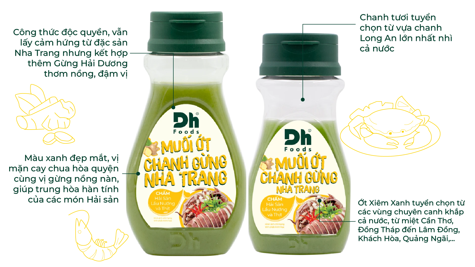 Vẫn là phiên bản Muối Ớt Chanh Nha Trang quen thuộc, nay có thêm 5% Gừng để nhân mười độ ngon. Gừng vị nồng, tính ấm nên rất hợp với các món Nghêu, Sò, Ốc, Hến,... để cân bằng hàn tính.