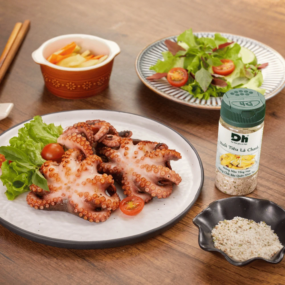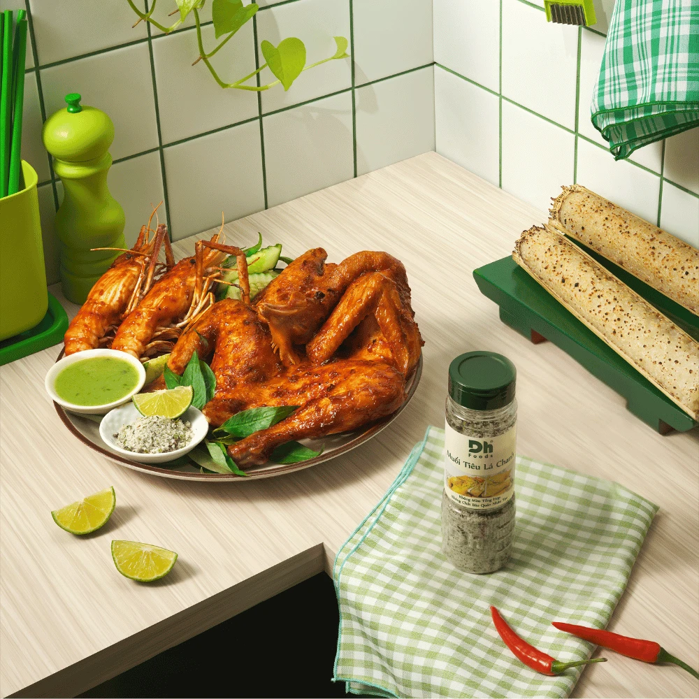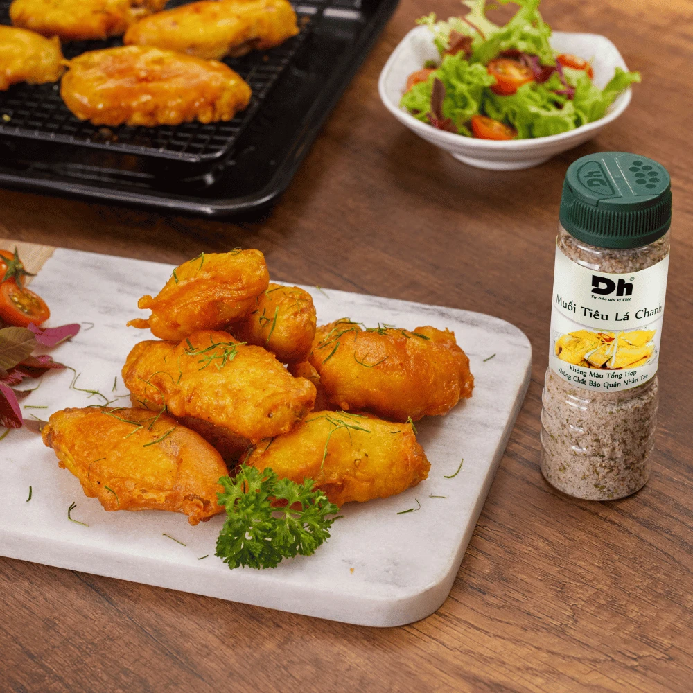 Muối Tiêu Lá Chanh Dh Foods lạ ở chỗ đã sẵn có Lá Chanh sấy khô – nên chẳng cần vắt thêm tí tắc, tí chanh gì đâu, vẫn thơm lừng và trọn vị!
