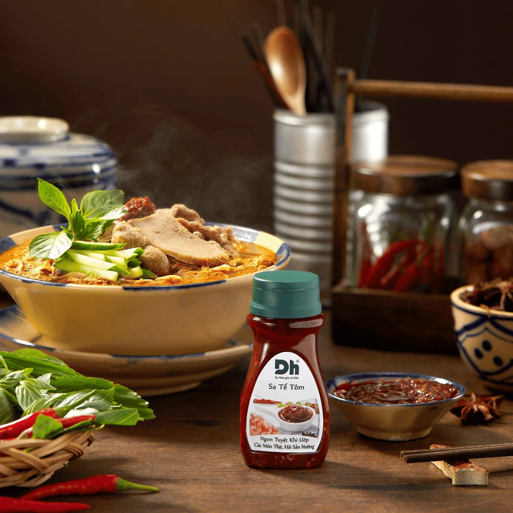 Thơm đậm mùi tôm khô quyện cùng sả, tỏi, ớt và dầu ăn vàng óng. Dùng tẩm ướp thịt nướng sa tế, vú heo/vú dê nướng sa tế hoặc thưởng thức cùng Bún Bò Huế, Phở, Mì Quảng,... đều bắt vị!