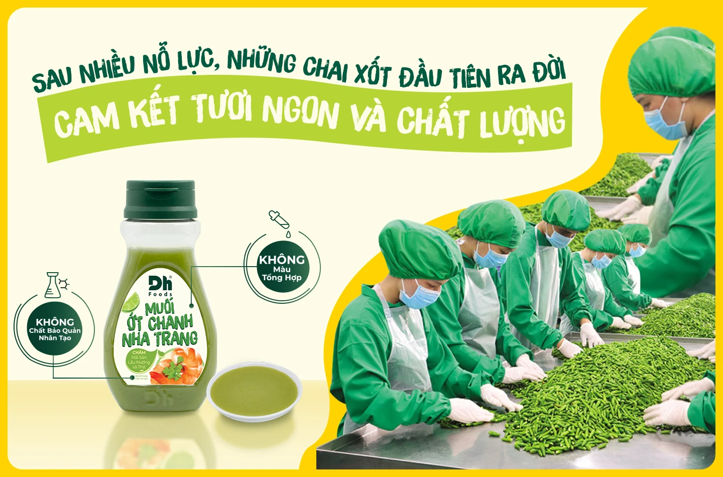 Ngay từ đầu, Dh Foods đã đối mặt với bài toán lớn về đặc tính tự nhiên của sản phẩm: làm sao để giữ được màu xanh tươi của ớt xiêm xanh, hương thơm tươi mát của chanh mà không bị biến đổi chất lượng theo thời gian. Cách dễ dàng nhất là sử dụng màu tổng hợp và chất bảo quản, nhưng đó không phải là con đường tắt mà Dh Foods chọn lựa.