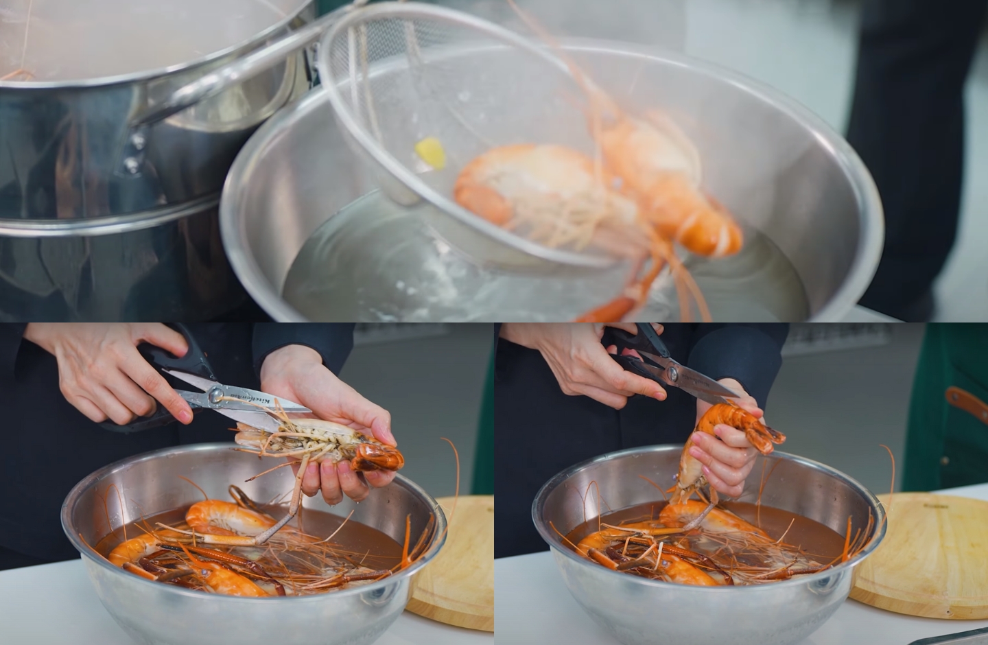 Avant de griller, il est conseillé de faire bouillir les crevettes pour éviter qu'elles ne se dessèchent. Vous pouvez ajouter du gingembre à l'eau bouillante pour éliminer l'odeur de poisson et équilibrer le yin et le yang pour les personnes à l'estomac fragile.