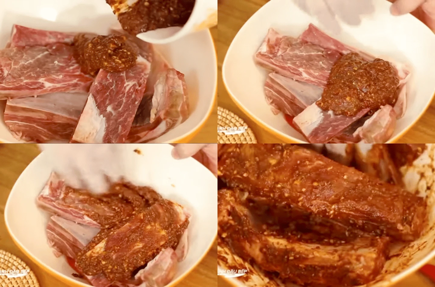 Ướp sườn với các gia vị ít nhất trong 2 giờ trong tủ lạnh hoặc để qua đêm để sườn thấm đều.