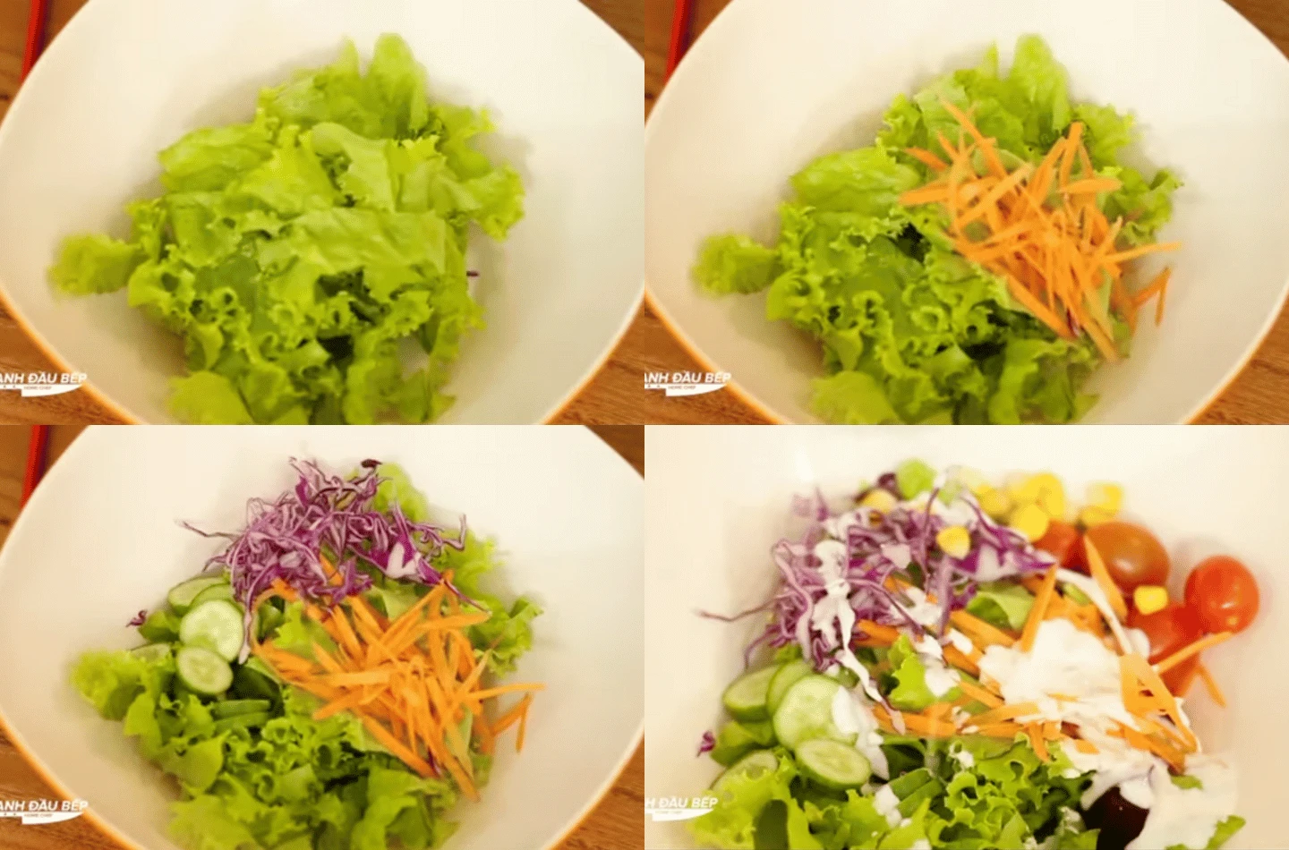 Nguyên liệu cho món salad rất đa dạng, tùy thuộc vào sở thích mỗi người. Ở đây Dh Foods gợi ý bạn sử dụng: Rau xà lách, dưa leo, cà rốt và bắp cải tím, bắp cải bào sợi, một ít bắp ngọt và cà chua bi. Cuối cùng không thể thiếu chính là nước xốt. Nếu bạn đang trong quá trình giảm cân, nước xốt sữa chua sẽ là sự lựa chọn hàng đầu đấy!