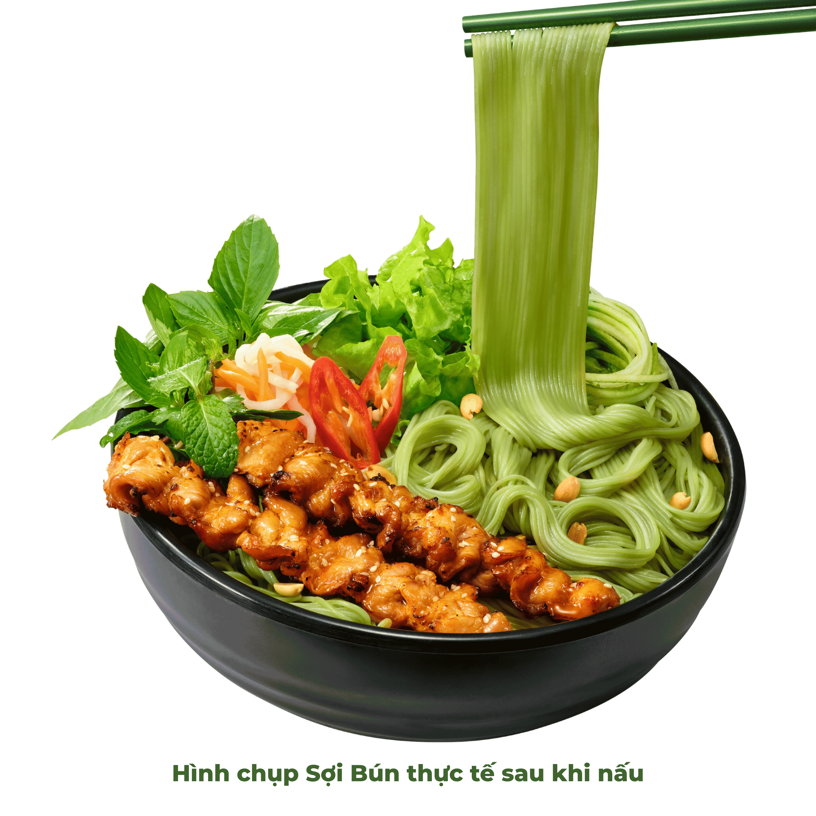 Bún Matcha gây ấn tượng bởi nguyên liệu bột Matcha đầy sáng tạo, làm từ lá trà xanh trồng tại Sơn La ở độ cao 1.500m so với mực nước biển. Vẫn giữ được sự mềm dai như bún gạo truyền thống, nhưng mang thêm sắc xanh bắt mắt và hương matcha thoảng nhẹ, Bún Matcha mở ra cảm hứng mới cho món Bún Thịt Nướng, Bún Trộn hay bất kỳ biến tấu hiện đại nào trong căn bếp của bạn.