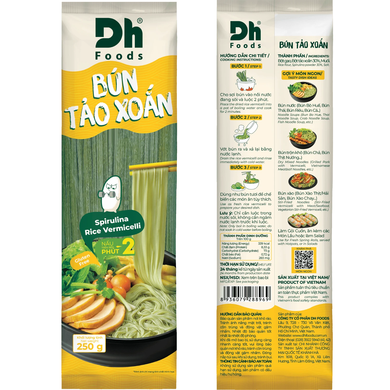 Tảo Xoắn, một nguyên liệu giàu dinh dưỡng, chắc hẳn không còn xa lạ với những tín đồ Bún sáng tạo. Nay được nâng tầm trong phiên bản Bún Tảo Xoắn Dh Foods với nguồn nguyên liệu Bột Tảo Spirulina được tuyển chọn từ vùng trồng địa phương tại Vĩnh Hảo, Lâm Đồng. Đặc biệt hơn, Bún được làm ở dạng sợi thẳng, dễ tách, dễ đong lượng và cực kỳ tiện lợi khi chế biến từ bún nước, bún trộn cho đến gỏi cuốn.