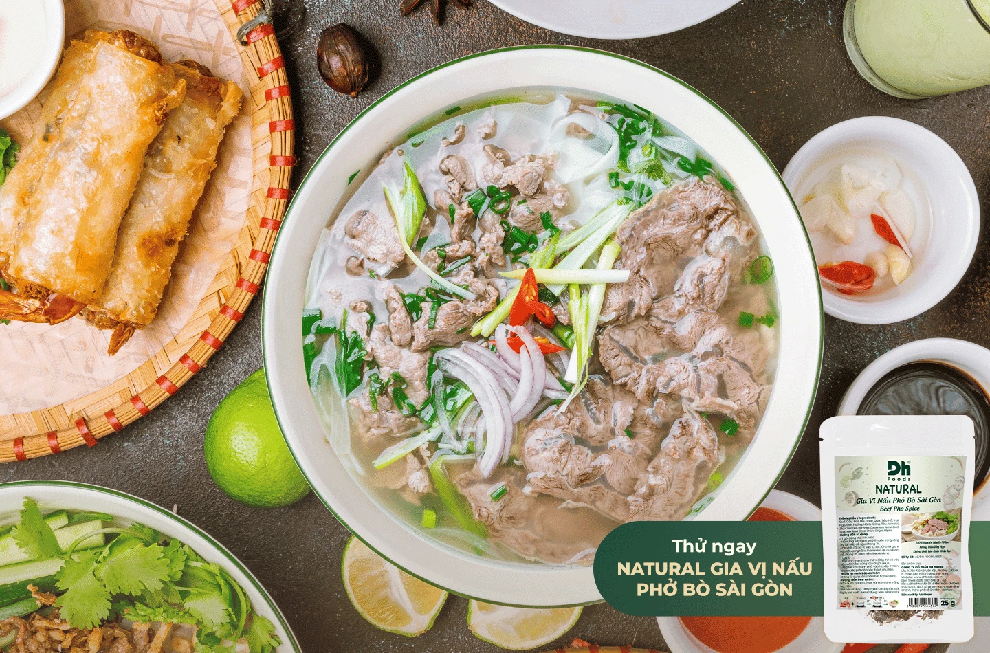 Phở Việt nổi tiếng bởi sự kết hợp của các loại thảo mộc tạo nên hương vị vừa đậm đà vừa tinh tế dễ chịu. Giờ đây, bạn có thể dễ dàng tự tay vào bếp và chiêu đãi người thân với những tô Phở nóng hổi mà vẫn chuẩn vị cùng với sự đồng hành của 3 phiên bản Natural Gia Vị Nâu Phở từ Dh Foods. Từ ngọt thanh trong Natural Gia Vị Nấu Phở Bò Hà Nội, nhẹ nhàng trong Natural Gia Vị Nấu Phở Gà đến đậm đà và hương vị phức tạp hơn trong Natural Gia Vị Nấu Phở Bò Sài Gòn. Bộ ba là giải pháp tiện lợi giúp bạn vừa thoải mái lựa chọn vị Phở phù hợp với gia đình, vừa an tâm sử dụng nguyên liệu tự nhiên, không tạp chất.