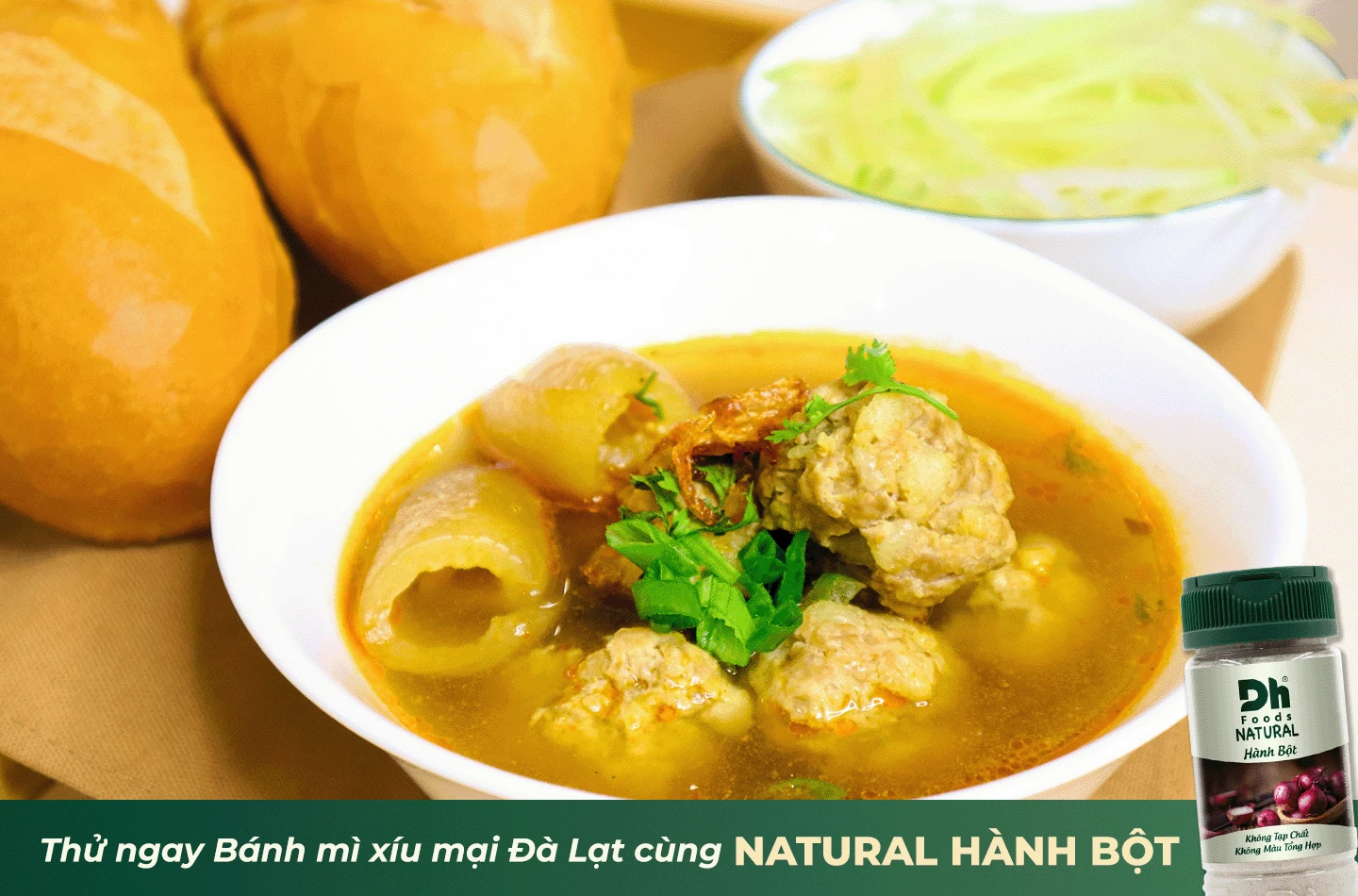 Trong món Bánh Mì Xíu Mại trứ danh, Hành Bột đóng vai trò quan trọng trong việc tạo nên hương vị đậm đà cho viên xíu mại. Thay vì băm hành tươi, việc dùng Natural Hành Bột để ướp cùng thịt xay, mỡ heo và các gia vị khác giúp viên thịt thấm đều, thơm lừng từ bên trong mà không bị lợn cợn.