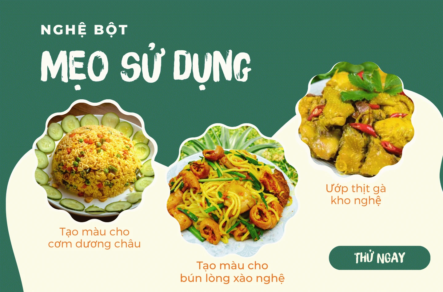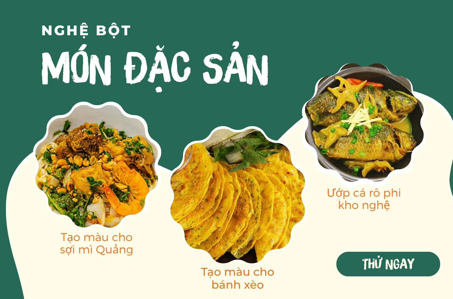 Trong ẩm thực Việt, nghệ là thành phần chính tạo nên gia vị cà ri và ngũ vị hương. Có lẽ, bạn đã từng nhiều lần ăn tô “mì xứ Quảng” với vắt mì vàng óng; đâu đó đĩa bánh xèo chảo vàng, thơm và đầy thịt; tô mì xứ Quảng với vắt mì vàng óng hay món cá rô phi kho nghệ của mẹ nấu,...