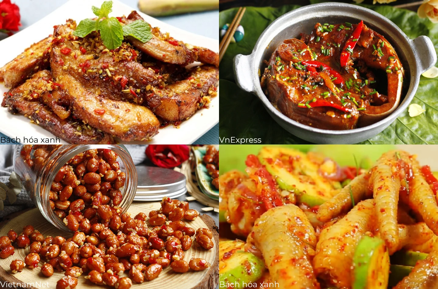 - Đậu phộng rang tỏi ớt: Đây là món ăn vặt nhà làm mà bất cứ ai cũng mê mẩn. Những hạt đậu phộng được rang giòn, béo bùi, tỏi ớt bám đều bề mặt tạo nên hương vị đậm đà, cuốn hút khiến bạn ăn mãi không dừng được.