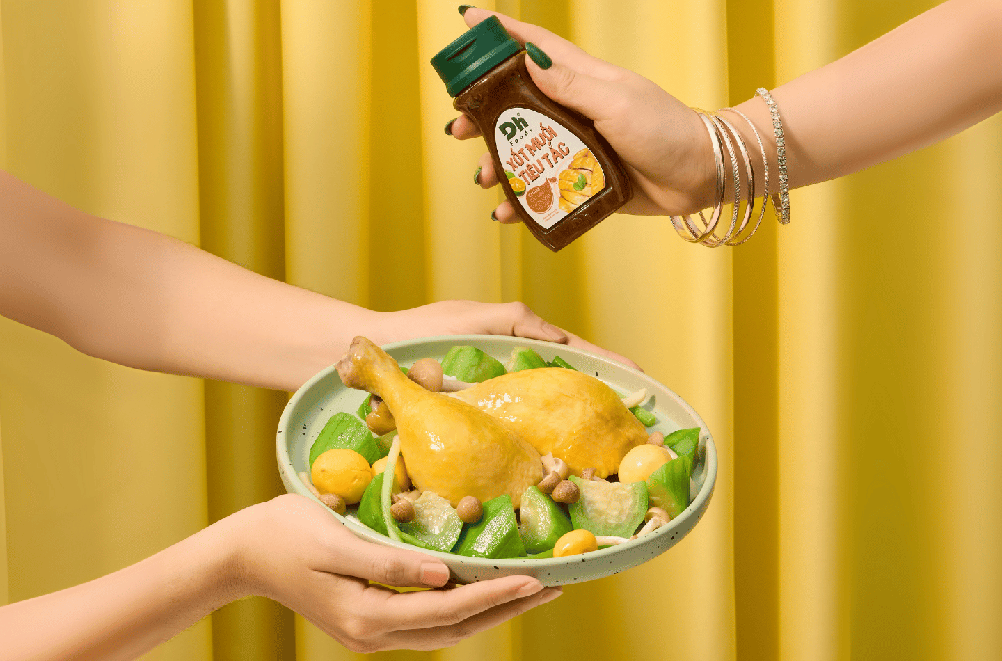 Gà luộc, gà hấp bầu hay trứng luộc chấm muối tiêu tắc là sự kết hợp kinh điển trong ẩm thực Việt. Xốt Muối Tiêu Tắc Dh Foods với vị cay nhẹ, mặn vừa và hương tắc thơm mát giúp thịt gà luộc thêm tròn vị, ngon ngọt.