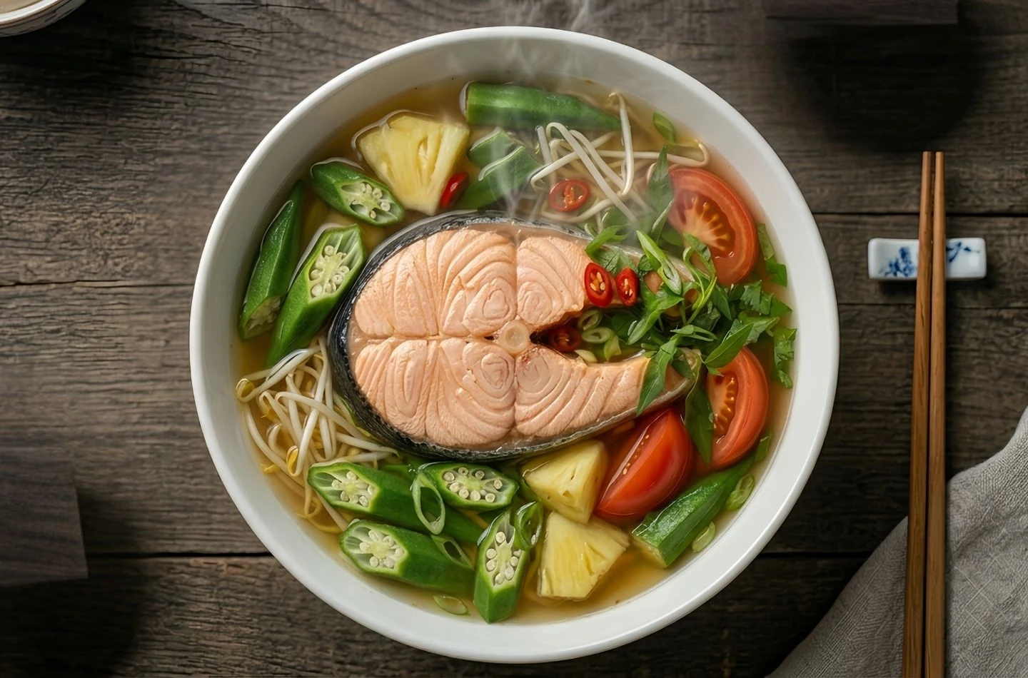 - Siêu ngon chuẩn vị: Xốt cân bằng hoàn hảo ngũ vị (chua thanh, ngọt dịu, cay nhẹ). Nước dùng bắt mắt, dậy mùi mắm, tỏi, mang đến hương vị mộc mạc, “bắt cơm” chuẩn vị mẹ nấu.