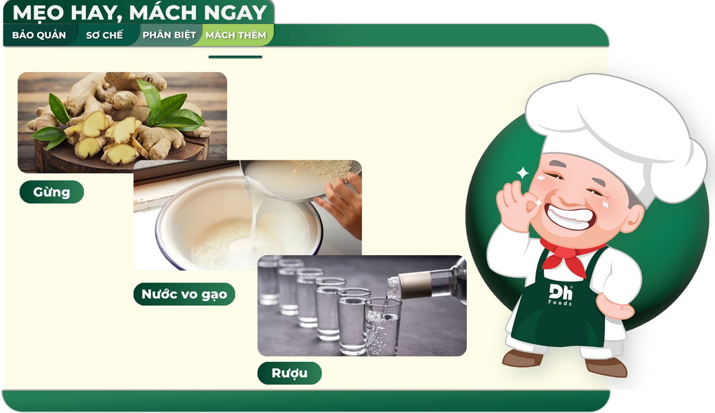 Sơ chế thịt bằng gừng đập dập: Khi đập dập gừng cho vào nước ngâm cùng thịt tầm 5 phút, tinh dầu trong gừng sẽ làm bán mùi hôi từ thịt.