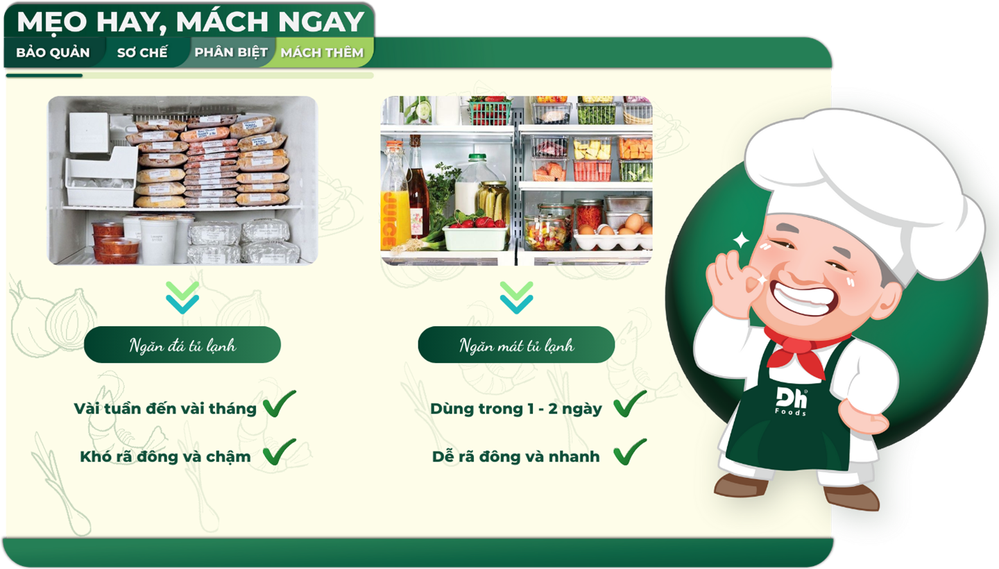 Nếu cần sử dụng cá trong 1-2 ngày, ngăn mát tủ lạnh là lựa chọn phù hợp hơn dành cho bạn, vì sẽ không phải mất nhiều thời gian khi rã đông mà vẫn đảm bảo độ tươi khi chế biến. Cách thực hiện tương tự như bảo quản ngăn đá, nhưng do dùng trong 1 đến 2 ngày, bạn không cần phải dán tem hay ghi nhãn cho chúng.