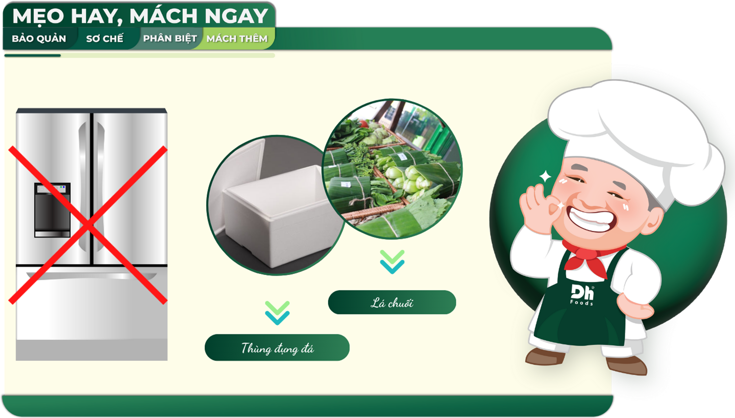 Dùng thùng nước đá và lá chuối bảo quản khi không có tủ lạnh