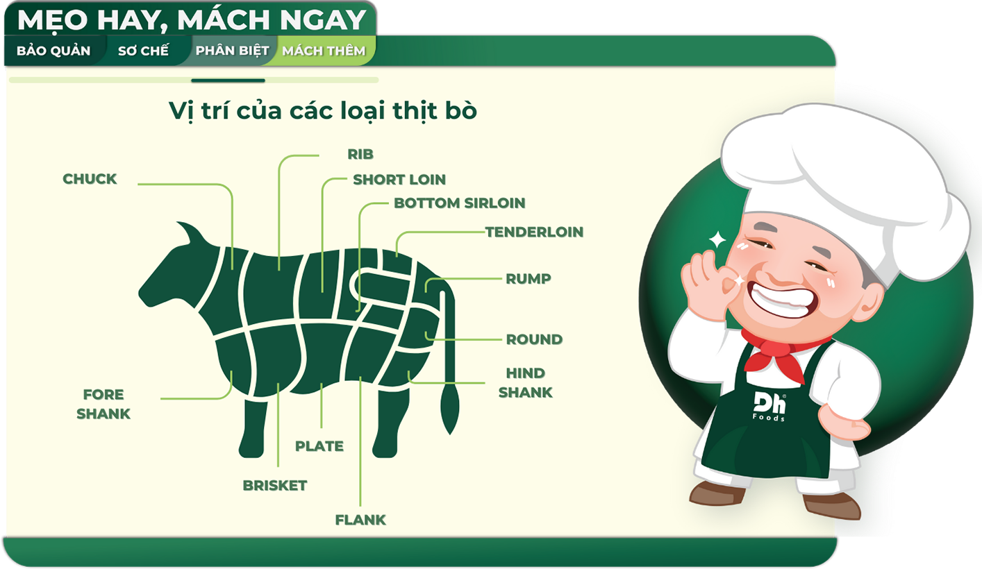 Từ những miếng ba chỉ mềm béo, thăn phi lê cao cấp đến sườn bò, mỗi phần thịt đều có cách chế biến tối ưu riêng. Cho nên vị trí và đặc tính của thịt bò sẽ đóng vai trò quan trọng trong việc biến tấu món ăn, từ xào, nướng, đến hầm, kho hay nhúng lẩu.