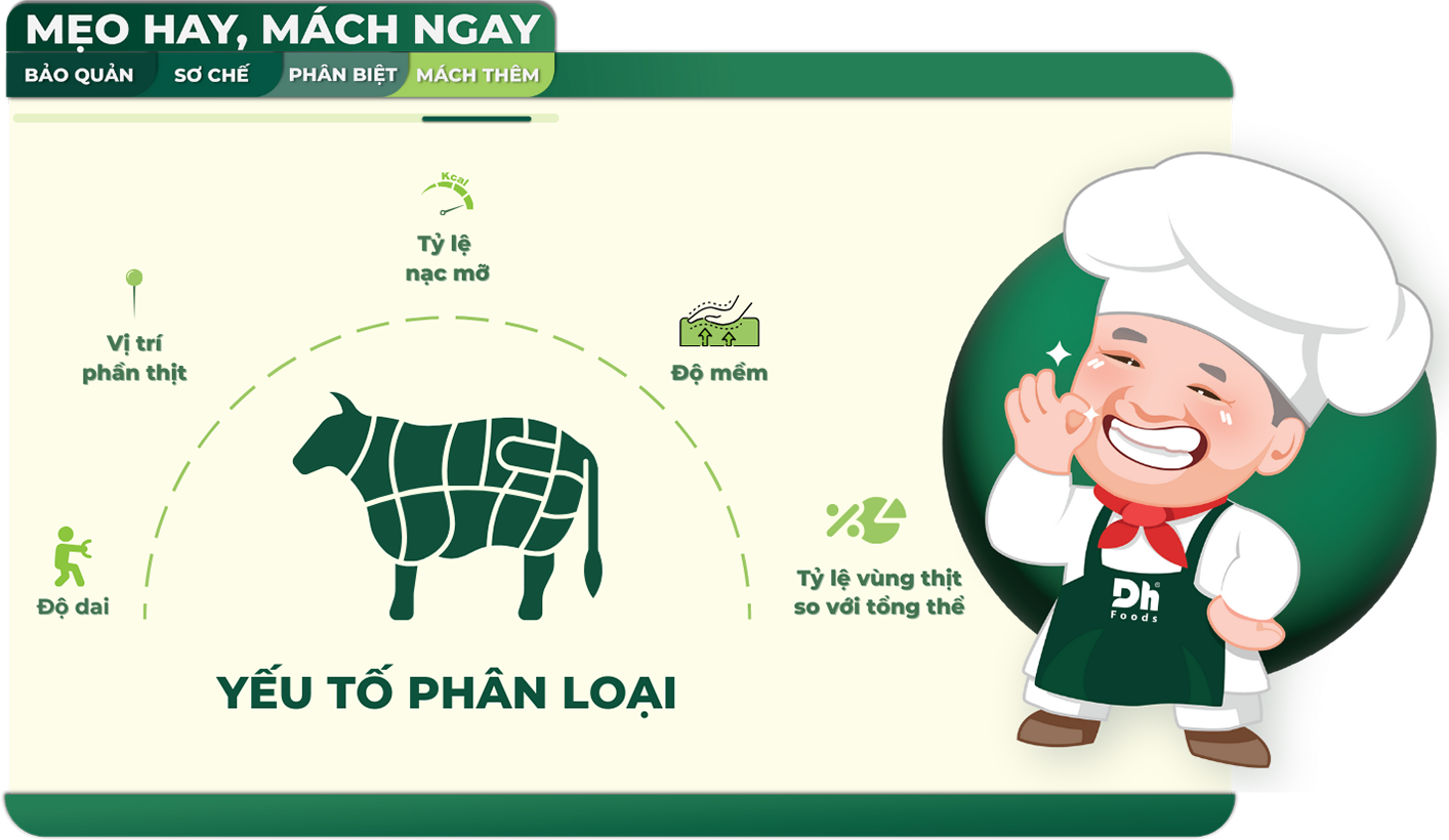 Tóm lại, căn cứ vào các yếu tố như vị trí phần thịt, tỷ lệ nạc mỡ, độ mềm, độ dai và tỷ lệ vùng thịt so với tổng thể, thịt bò được chia thành nhiều loại khác nhau. Những yếu tố này đóng vai trò quan trọng trong việc lựa chọn và chế biến món ăn sao cho phù hợp với phần thịt. Khi hiểu rõ đặc điểm của từng phần, bạn có thể tận dụng tối đa hương vị tự nhiên và kết cấu của thịt bò, từ đó nâng cao chất lượng và sự hấp dẫn cho món ăn.