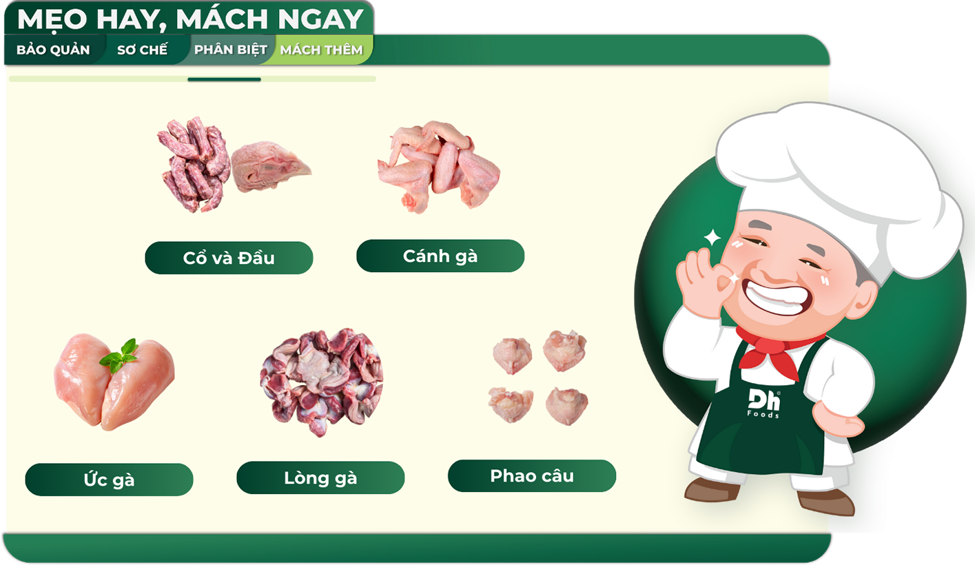 Khi phân biệt và hiểu rõ được từng loại thịt gà sẽ giúp bạn chọn được bộ phận phù hợp với từng món ăn, tối ưu hương vị và cả thành phần dinh dưỡng. Mỗi phần thịt sẽ có độ dai, kết cấu và béo khác nhau, vì thế nên lựa chọn đúng phần thịt là yếu tố quan trọng để nấu được một món ăn ngon bổ dưỡng.