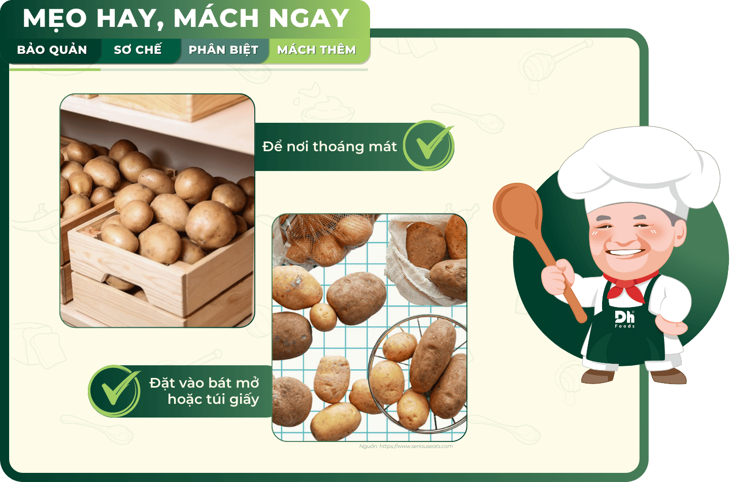 Đằng, N. Đ. M. C. (2023, September 5). Những cách bảo quản khoai tây tươi lâu và không bị mọc mầm. dienmayxanh.com. https://www.dienmayxanh.com/vao-bep/nhung-cach-bao-quan-khoai-tay-tuoi-lau-va-khong-bi-moc-mam-12571?srsltid=AfmBOorl2vJZXYJXpIiXYhQ1vhINmfnV8MzEAobaYc7dPQGju-FTZODA