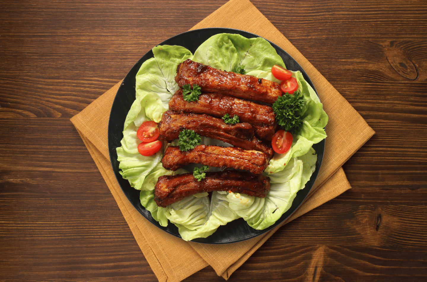 Món ăn tiếp theo trong danh sách là sườn heo nướng mật ong, nổi bật với vị ngọt thanh của mật ong được thấm đẫm trong từng thớ thịt. Khi nướng, sườn tỏa hương thơm lừng, lớp ngoài óng ánh đẹp mắt còn bên trong thì mềm mọng.