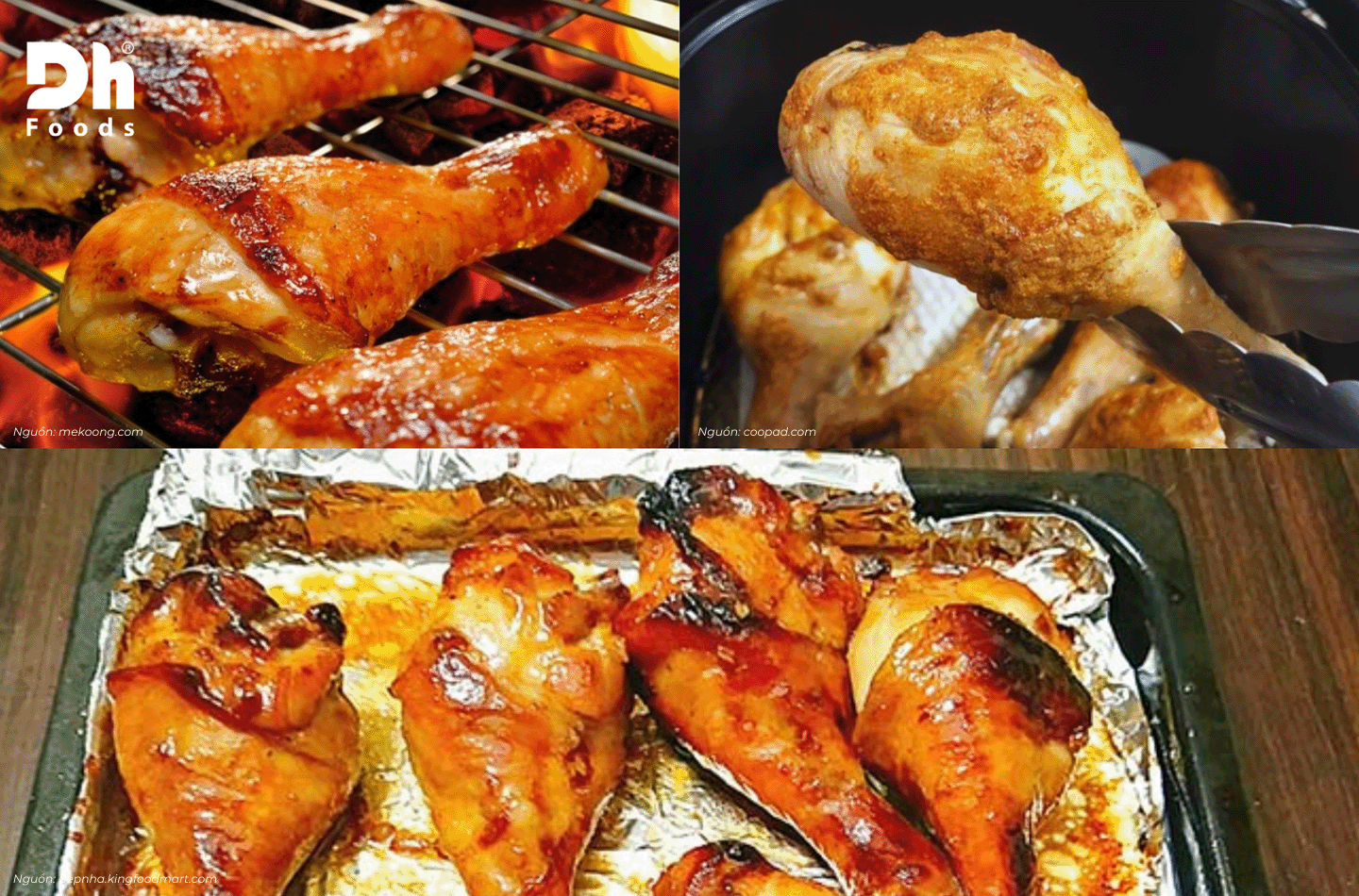 Nướng đùi gà bằng bếp than: Nướng gà trên bếp than trong khoảng từ 30 - 60 phút với lửa vừa.