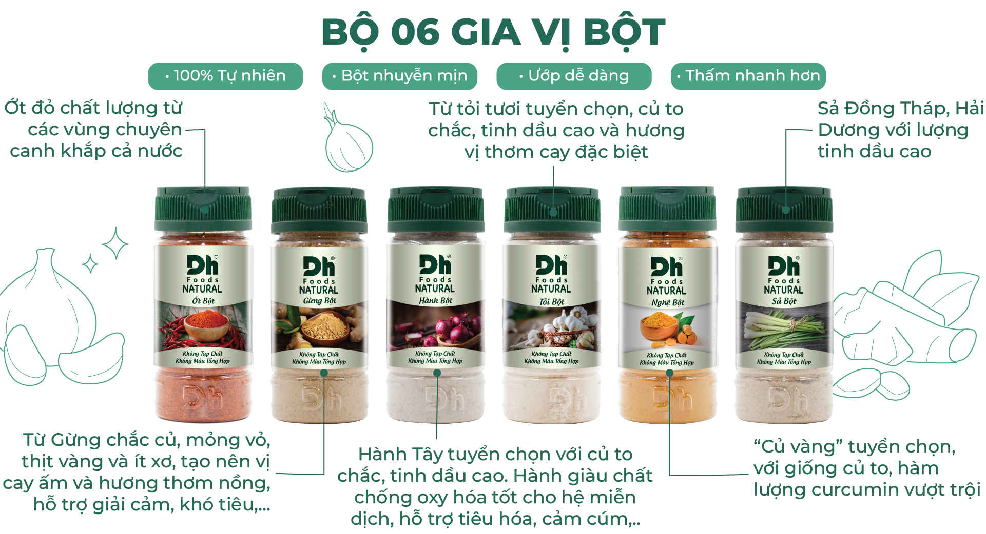 Từ giống Tỏi tuyển chọn với củ to, chắc, hương vị thơm cay đặc trưng nhờ hàm lượng tinh dầu cao. Tỏi Bột hoàn toàn có thể thay thế Tỏi tươi để ướp cá chiên, thịt nướng hay bất kỳ món nào cũng làm dậy hương lan tỏa khắp nhà.