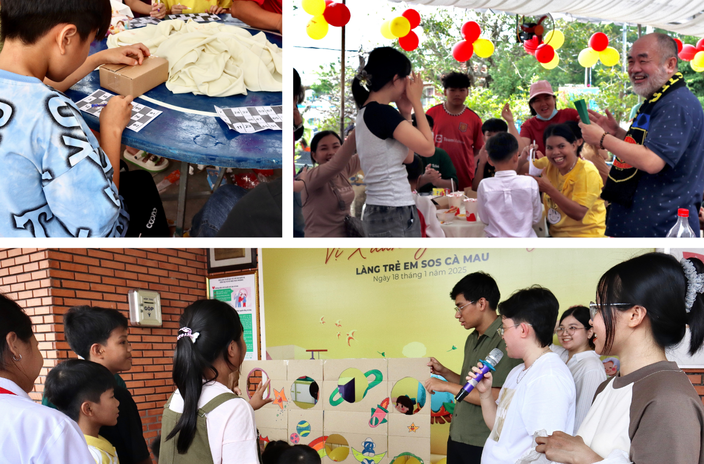 Khác với lần ghé thăm trước, các anh chị đã chuẩn bị nhiều hoạt động gắn kết cùng các em hơn với nhiều trò chơi quen thuộc như lô tô, ném bóng vào ô, đoán ý đồng đội... Đặc biệt, các anh chị Dh Foods cũng nhiệt tình tham gia, hòa mình vào niềm vui chung, khiến không khí càng trở nên sôi động, náo nhiệt và “tết” hơn bao giờ hết.
