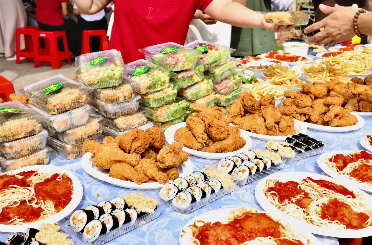 Sau khi đã chơi vui vẻ và có chút mệt, giờ là lúc tiệc vui bắt đầu. Dh Foods bí mật chuẩn bị một bữa tiệc tất niên hoành tráng với các món ăn khoái khẩu của các bé như Gà Rán, Cơm Cuộn, Mì Ý… được gợi ý bởi chính anh CEO Nguyễn Trung Dũng. Thật vui vì em nào cũng thích, cũng ăn rất ngon miệng.